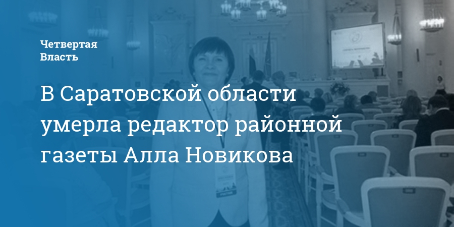 В Татищевском районе Саратовской области умерла редактор газеты «Сельская жизнь» Алла Новикова. Об этом сообщает региональное отделение Союза журналистов России.