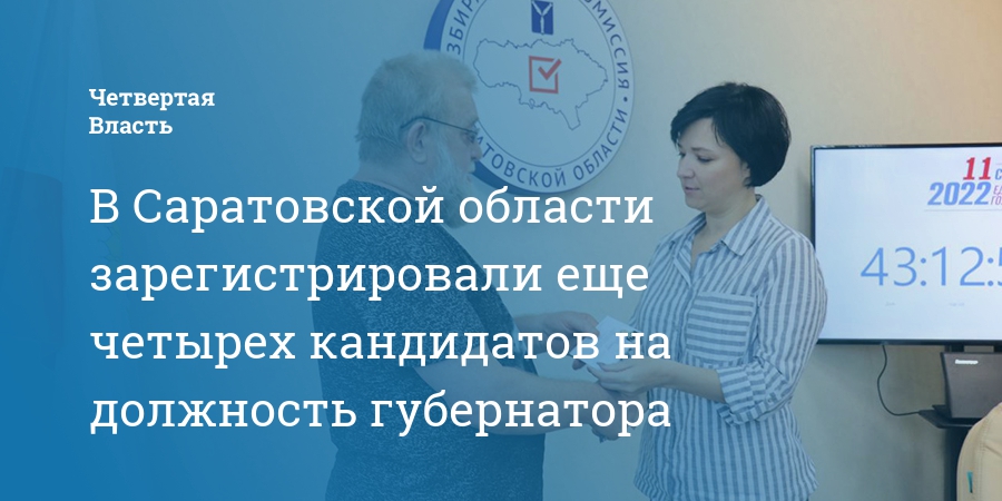 Сегодня в Саратовской области зарегистрировали еще четырех кандидатов на должность губернатора. Решение приняли на заседании избирательной комиссии, выборы пройдут с 9 по 11 сентября.