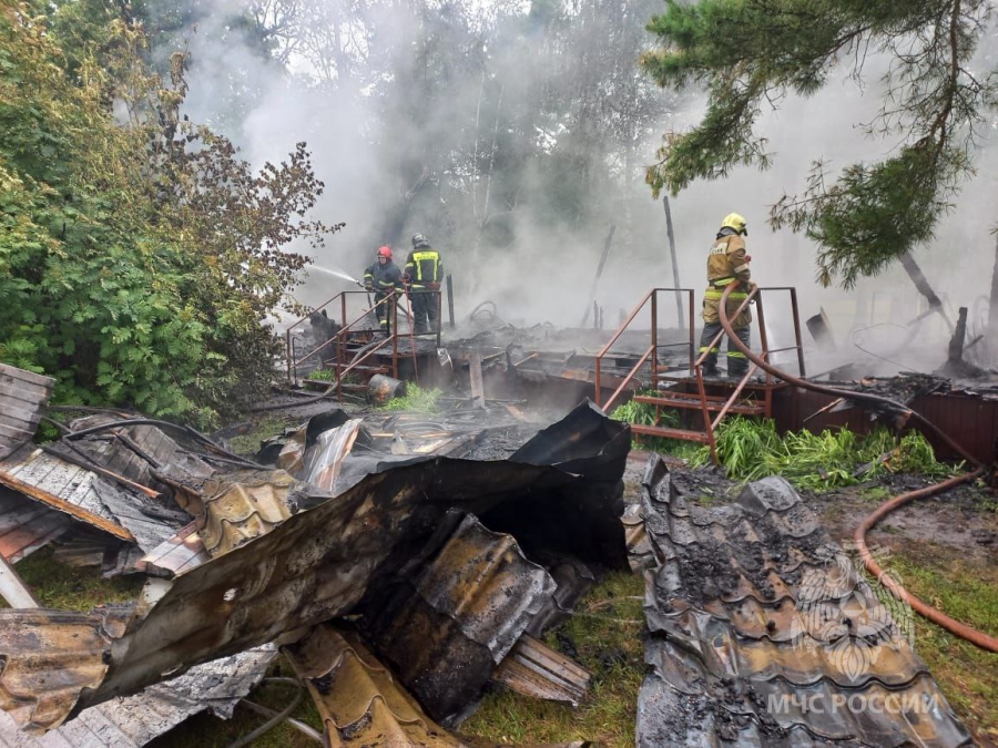 По предварительной версии, возгорание возникло из-за удара молнии.