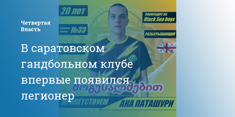 Состав саратовского гандбольного клуба «СГАУ-Саратов» пополнил грузинский разыгрывающий Ака Паташури. Гандболист стал первым настоящим легионером в команде.