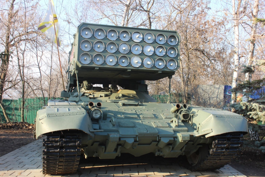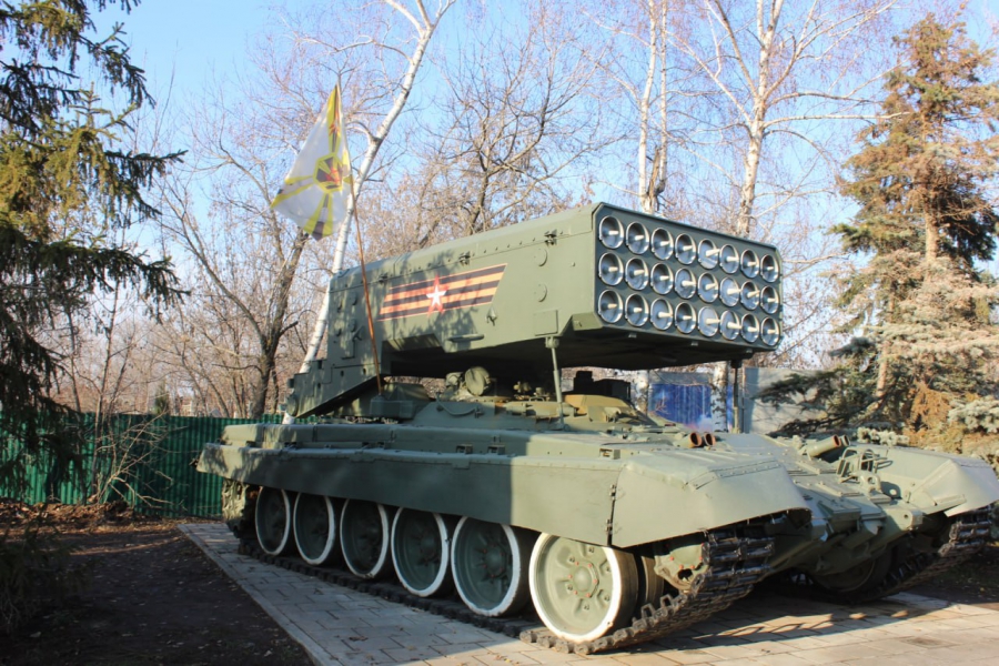 Кроме того, в Парке Победы располагается тяжелая огнеметная система «Солнцепек». Она предназначена для того, чтобы выводить из строя легкобронированную технику, а также для уничтожения живой силы противника на открытой местности и в фортификационных сооружениях. Эту систему используют, в частности, саратовские военнослужащие в зоне СВО.