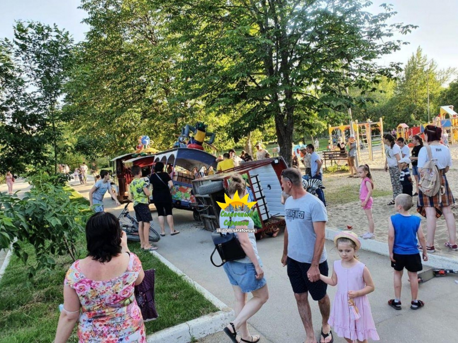 Вчера, 22 июня, в Ленинском районе Саратова детский паровозик опрокинулся на бок. О происшествии сообщил очевидец в группе «Солнечный Саратов» соцсети «ВКонтакте».