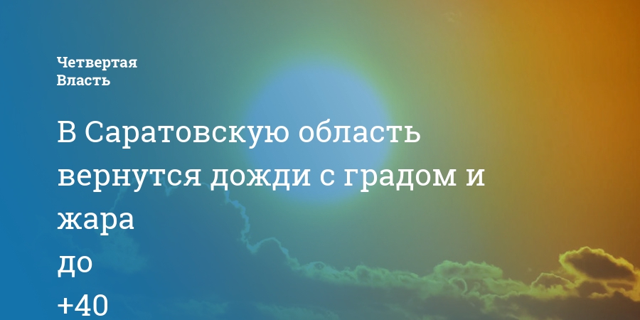 В Саратовской области прогнозируется сохранение и усиление жары, при этом возможны дожди. Как сообщила «Четвертой Власти» замруководителя областного Гидрометцентра Светлана Цветайло, максимальная температура ожидается до +40 градусов.