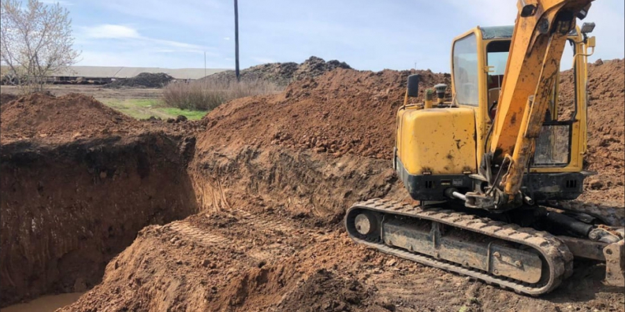 Так, на данный момент проводят земляные работы для закладки фундамента объектов водоснабжения.