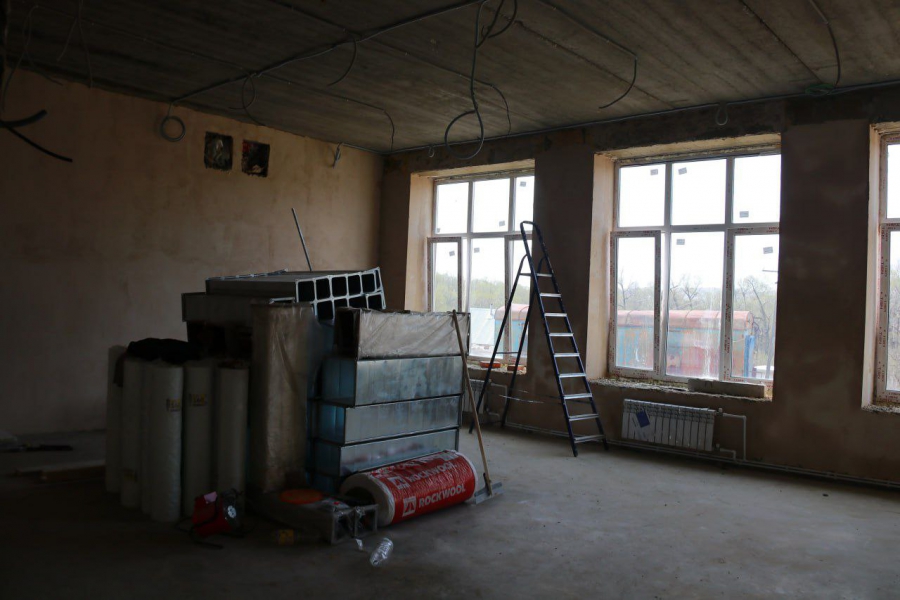 В настоящее время в пристройке сельской школы ведутся отделочные работы, монтаж канализации и водопровода.