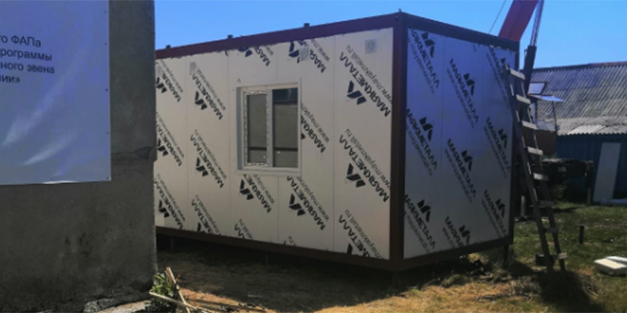 ФАП заработает уже в этом году. Модульная конструкция была доставлена поставщиком. Сейчас производится ее монтаж, при помощи районной администрации сюда подведут все необходимые коммуникации. После установки ФАП будет полностью оснащен необходимым медицинским оборудованием, мебелью и оргтехникой.
