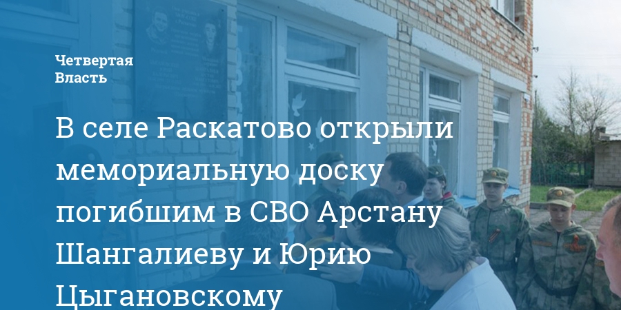 В селе Раскатово открыли мемориальную доску погибшим в СВО Арстану Шангалиеву и Юрию Цыгановскому