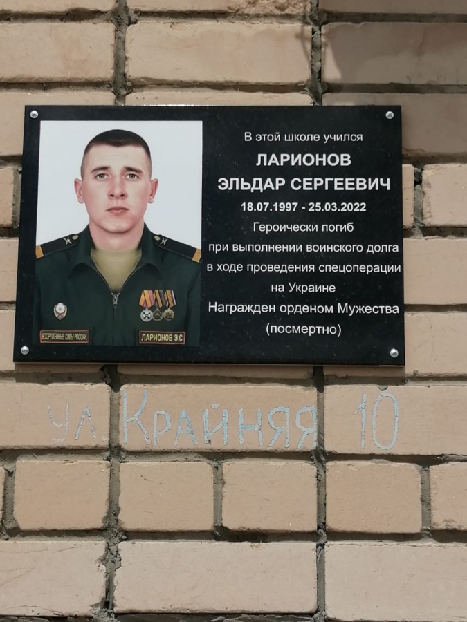 Вчера, 22 июня, в селе Воскресенское Саратовской области установили памятную доску в честь погибшего в специальной военной операции Эльдара Ларионова. Об этом в телеграм-канале сообщил глава района Денис Павлов.