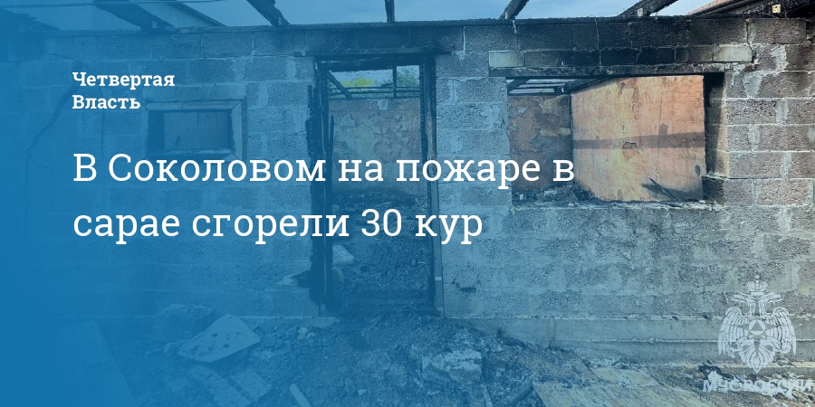 Сообщается, что информация о загорании в курятнике на улице Лесной в Соколовом поступила в 1.32. В горящем сарае погибли 30 кур. Площадь пожара составила 18 квадратных метров. На место происшествия выезжал один пожарный расчет.