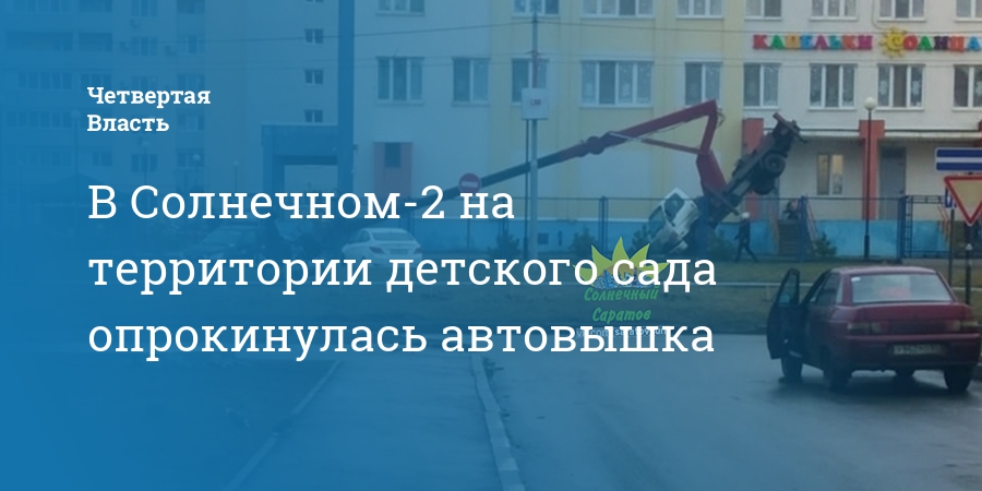 В Кировском районе Саратова автовышка опрокинулась во время работ на территории детского сада. Судя по фото в сообществе «Солнечный Саратов» в соцсетях, это случилось во дворе детсада №215 («Капельки Солнца») на Лисина, 8 в микрорайоне Солнечный-2.