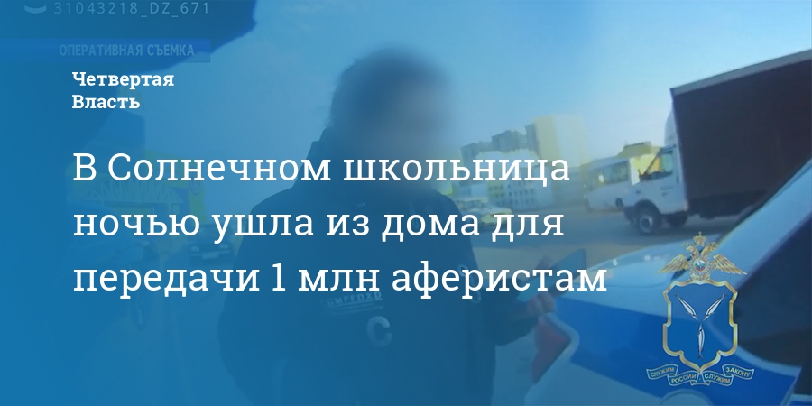 В Солнечном школьница ночью ушла из дома для передачи 1 млн аферистам