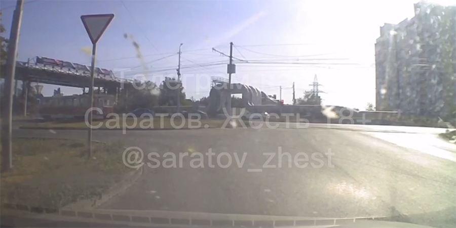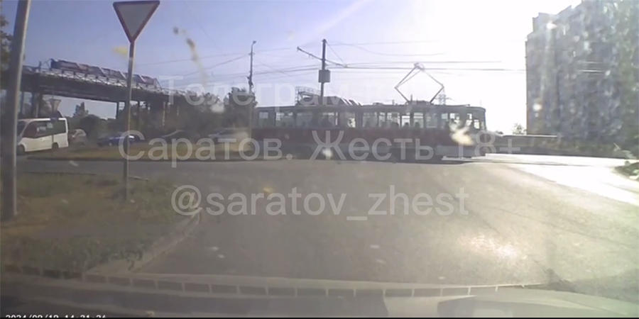 Между тем в телеграм-канале «Саратов. Жесть» появился видеоролик с моментом происшествия. Судя по видео, трамвай двигался на значительной скорости, и в момент выезда на пересечение с проезжей частью вагон слетел с путей. Столкновения с другими транспортными средствами не было.