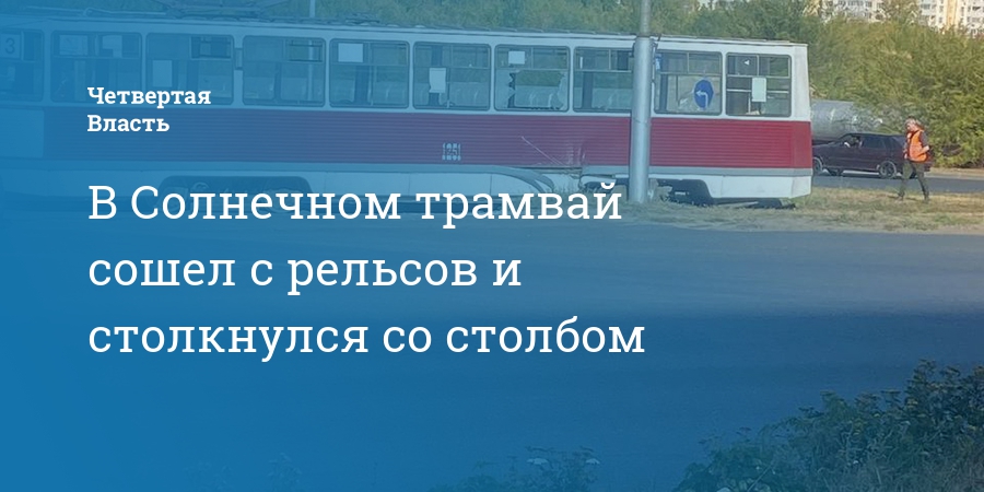 В Солнечном трамвай сошел с рельсов и столкнулся со столбом