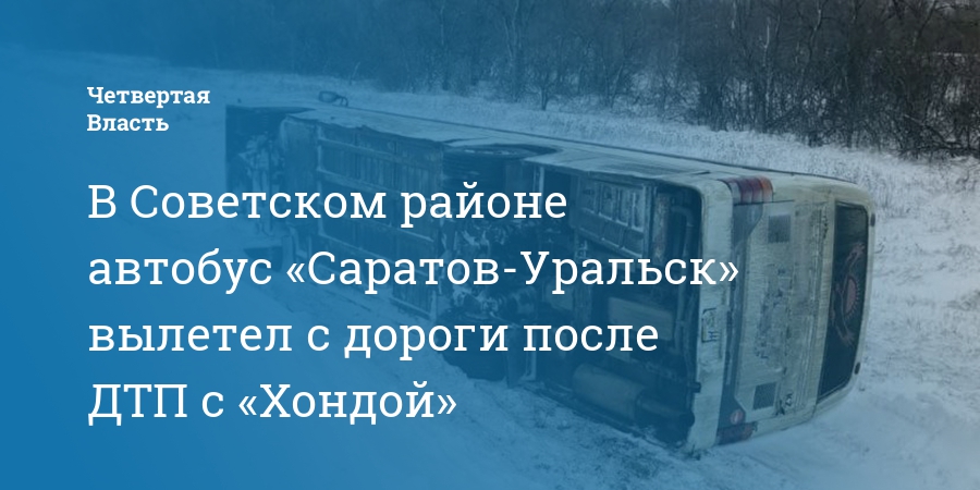 В Советском районе автобус «Саратов-Уральск» вылетел с дороги после ДТП с «Хондой»