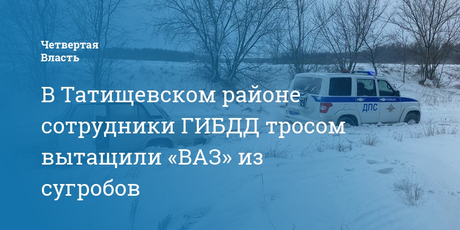 В Татищевском районе сотрудники ГИБДД тросом вытащили «ВАЗ» из сугробов