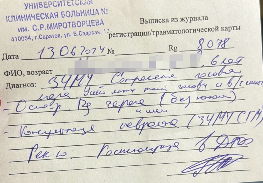 Ребенок, которого толкнули на траву в ходе конфликта в Волжском районе Саратова, находится в больнице. В социальных сетях тетя мальчика заявила, что в адрес семьи поступали угрозы.