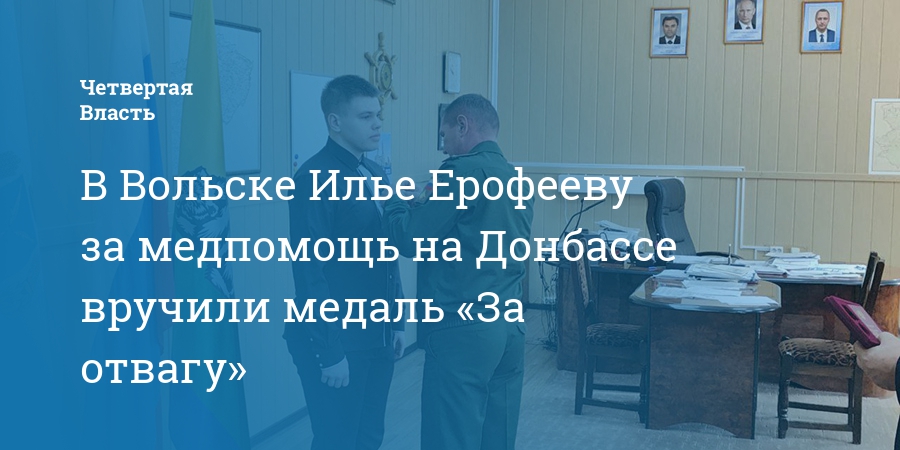 В Вольске Илье Ерофееву за медпомощь на Донбассе вручили медаль «За отвагу»