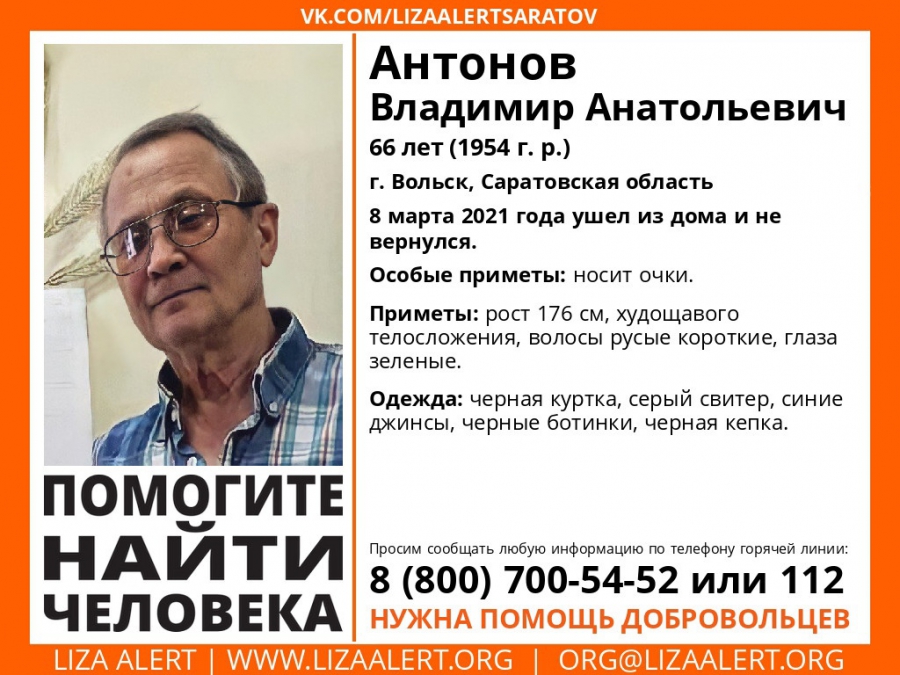 В Вольске ищут пропавшего 8 марта Владимира Антонова
