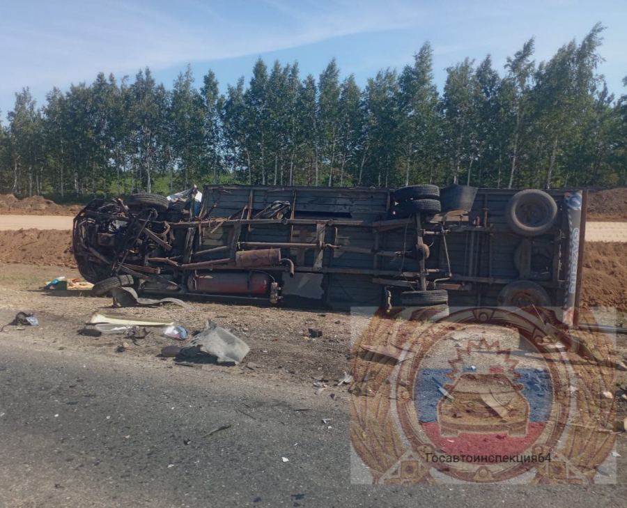В Вольском районе «ГАЗель» опрокинулась на трассе после ДТП со «Шкодой»