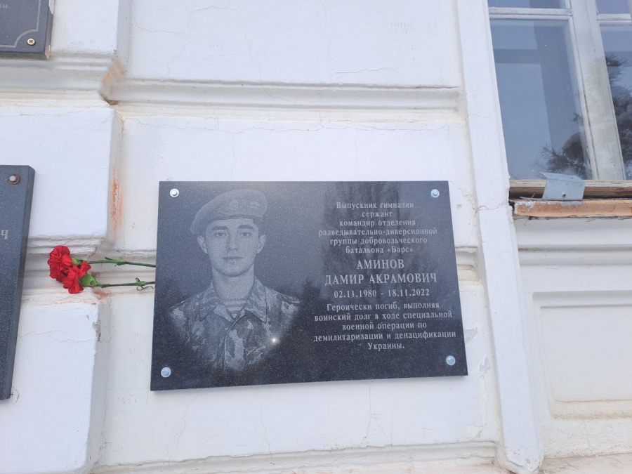 Так, на стене Гимназии №1 сегодня появилась мемориальная доска в память о Дамире Аминове. Он был командиром отделения разведывательно-диверсионной группы добровольческого батальона «Барс». Сержант героически погиб при выполнении воинского долга в ходе специальной военной операции. На мероприятии присутствовали близкие бойца, учащиеся и педагоги Гимназии.
