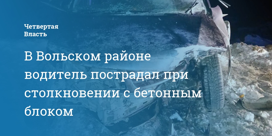 В Вольском районе водитель пострадал при столкновении с бетонным блоком