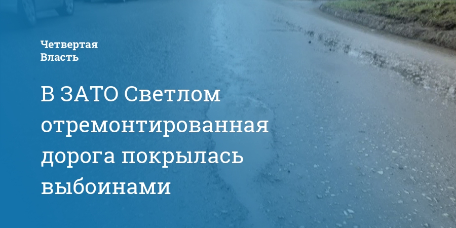 В ЗАТО Светлый выбоинами покрылась дорога, отремонтированная в конце прошлого года. Об этом рассказал бывший депутат, а сейчас общественник Алексей Требунский корреспонденту «Четвертой Власти».