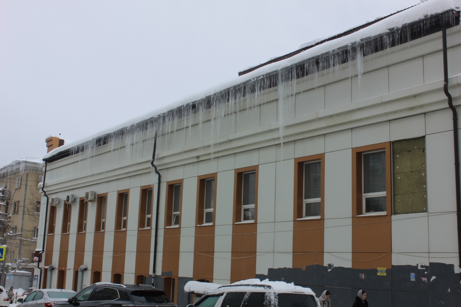 Не отбитые с крыши сталактиты встречаются на здании офисного центра на пересечении Октябрьской и Соляной, а также следующим за ним жилом доме №42 по Октябрьской. Еще один жилой дом №30, напротив региональной прокуратуры, также «оброс» торосами. Ни ограждений, ни предупреждающих надписей не видно нигде.