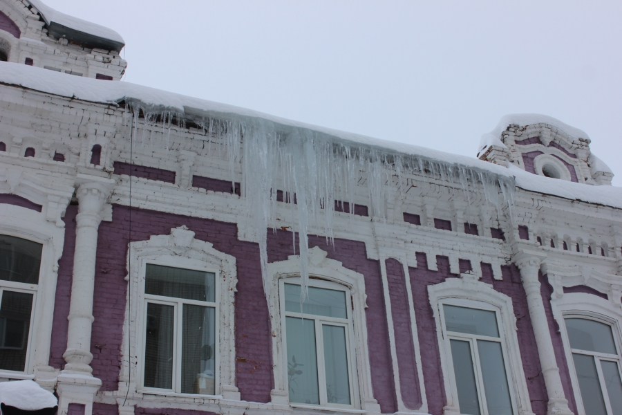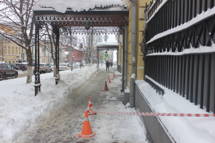 Значительное количество намерзшего на крыши опасного льда можно увидеть на Московской. В частности, между Радищева и Октябрьской он свисает почти с каждой крыши. Исключение – здание лицея №4 (угол Московской и Радищева), где также натянули сигнальную ленту.