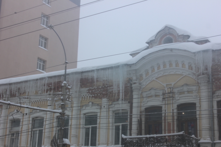 Большая работа по очистке крыш прошла на Советской. Сосульки тут можно увидеть разве что на здании «Саратовводоканала», да и то со стороны, где никто не ходит.