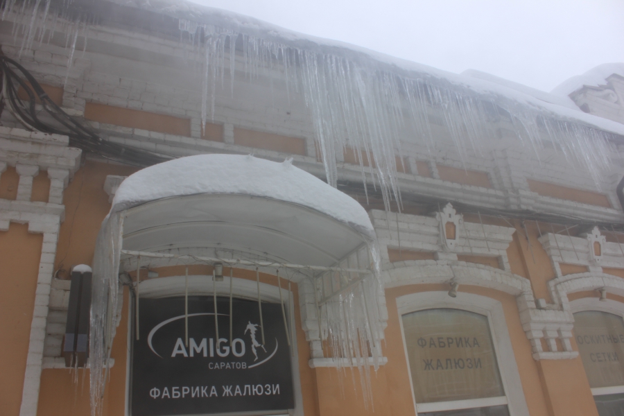 Сосульки на фасадах домов на центральных улицах Саратова угрожают жизни и здоровью горожан. Корреспондент «Четвертой Власти» зафиксировал факты, которые говорят о том, что многие управляющие организации не обременяют себя очисткой крыш.