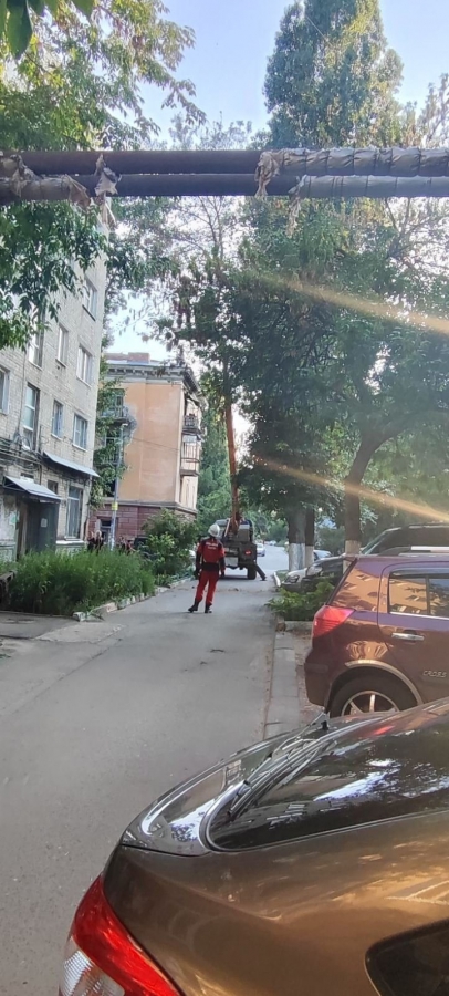 По словам очевидицы, на макушку дерева во дворе дома на Ново-Астраханском шоссе забралась домашняя кошка. Она застряла на высоте на 4 суток без возможности спуститься самостоятельно. Тогда неравнодушные горожане вызвали сотрудников городской службы спасения, которые согласились помочь.