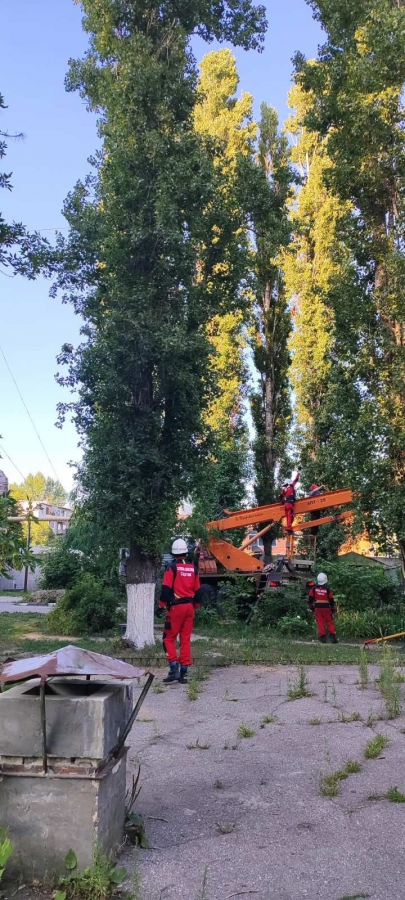 В Заводском районе кошка 4 дня не могла спуститься с дерева. Помогли спасатели