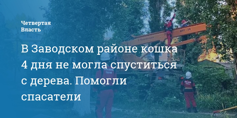 В Заводском районе Саратова спасатели сняли с дерева кошку, которая просидела на нем 4 суток. Благодарность горожане выразили в группе «Саратов онлайн» соцсети «ВК».
