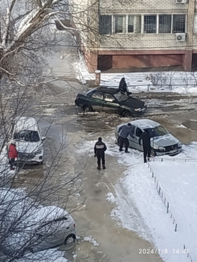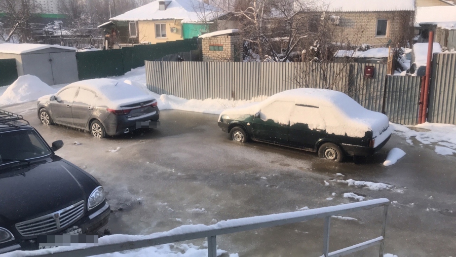 В Заводском районе Саратова в одном из дворов местные жители оказались в ледяном плену из-за коммунальной аварии. По сведениям местных жителей, некоторые машины буквально вмерзли в лед.