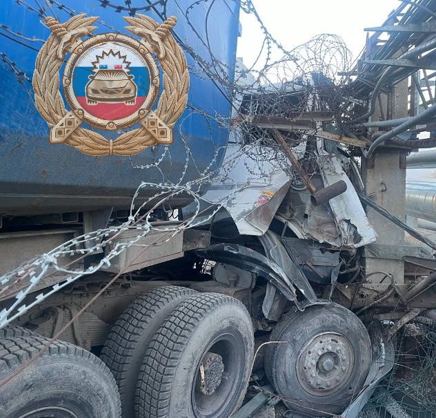 Судя по фото, вся передняя часть автомобиля, включая кабину водителя, смята.