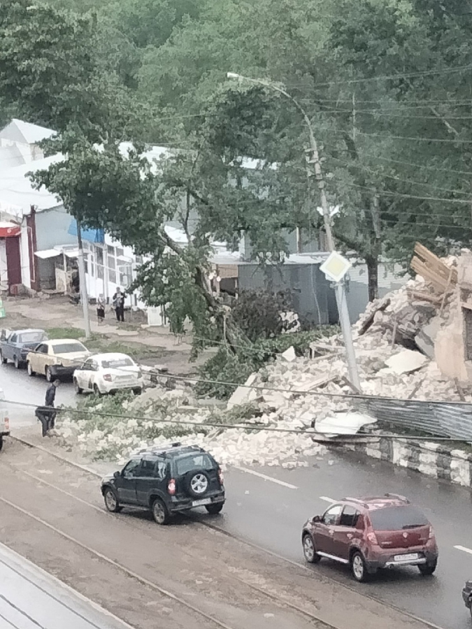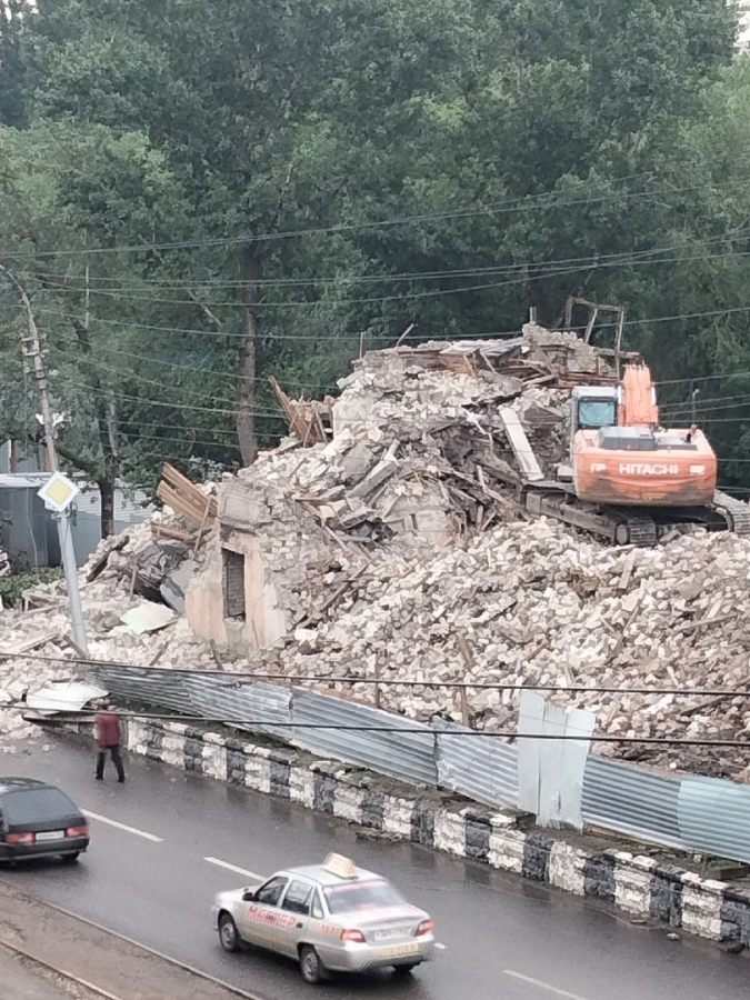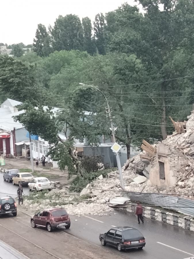 На фотографиях и видео заметно заехавший на руины дома экскаватор. Часть кирпичей и других материалов, прорвав ограждение, завалила сразу две полосы дороги, и автомобилисты вынуждены заезжать на трамвайные рельсы, чтобы объехать препятствие. Притом над проезжей частью опасно нависли электрический столб и дерево, видимо, «потревоженные» при разрушении здания.