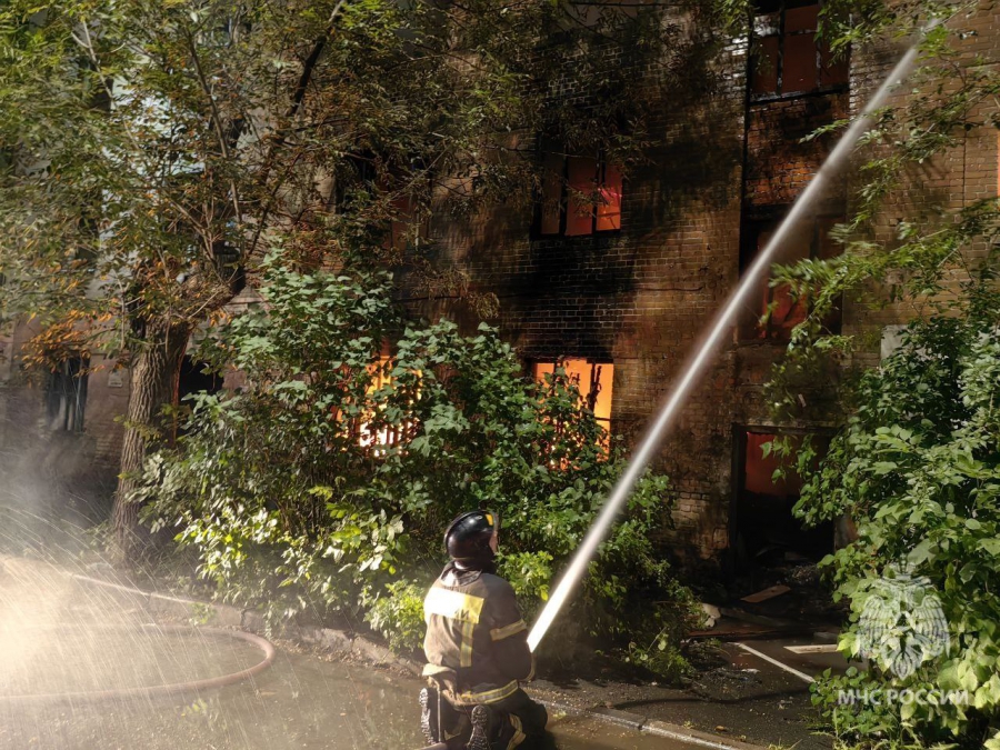 Предварительно, возгорание в доме на площади Орджоникидзе произошло примерно в 21.00. Горел целый подъезд 4-этажного расселенного дома. Через 40 минут огонь локализовали, а затем и потушили. На месте работали 4 пожарных расчета.
