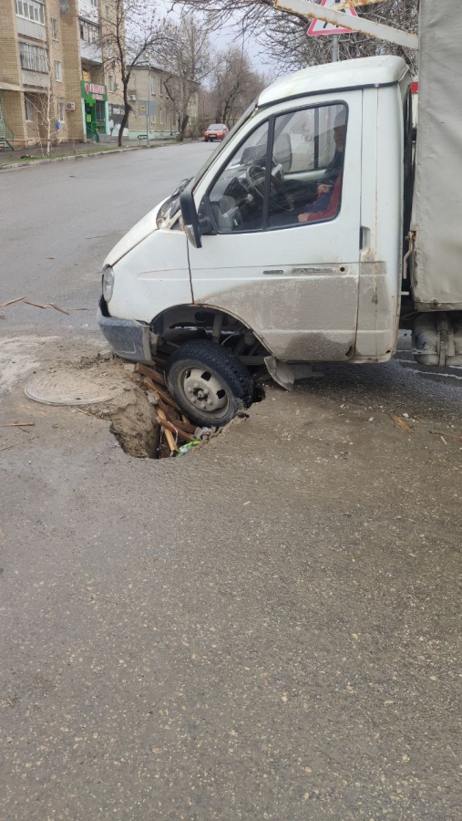 В Заводском районе в яму на дороге провалилась грузовая «ГАЗель»