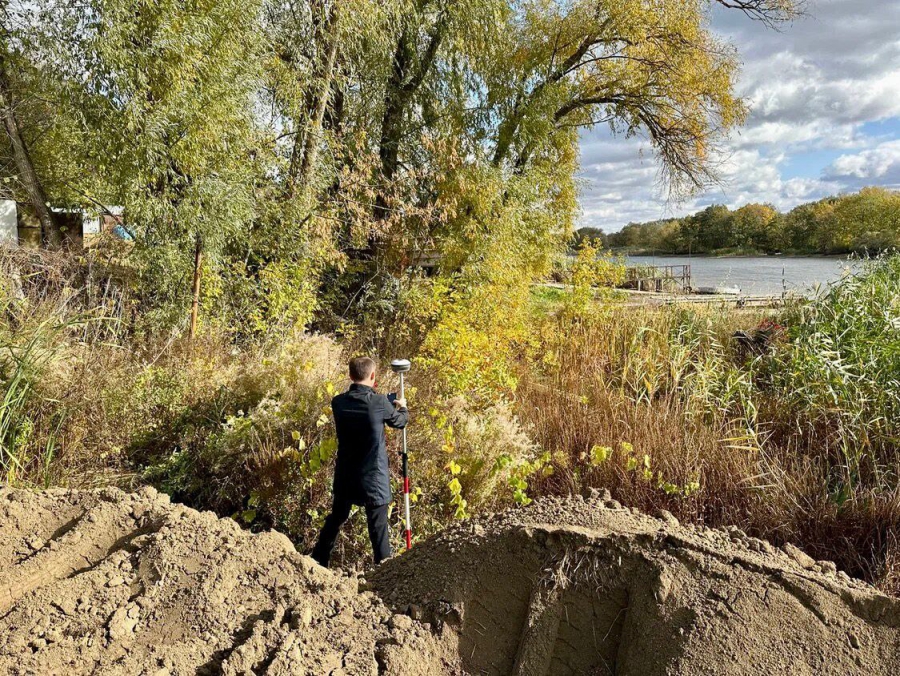 Провели выездную геодезическую съемку обработку материалов. Установлено, что бетонное берегоукрепляющее сооружение и навал грунта на территории вблизи участка СНТ «Василек-73» (Кумысная поляна) размещены за границами земельного участка, предоставленного на праве аренды физическому лицу. Они оказались уже на землях, где государственная собственность не разграничена.