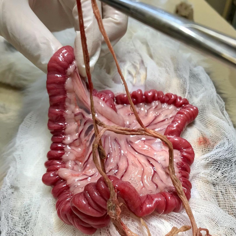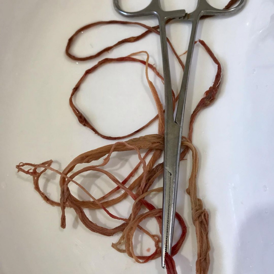 В Саратове кошка съела метровый моток пряжи. Ее спасали ветеринары клиники в районе Детского парка, результаты операции они опубликовали в своем инстаграм-аккаунте.