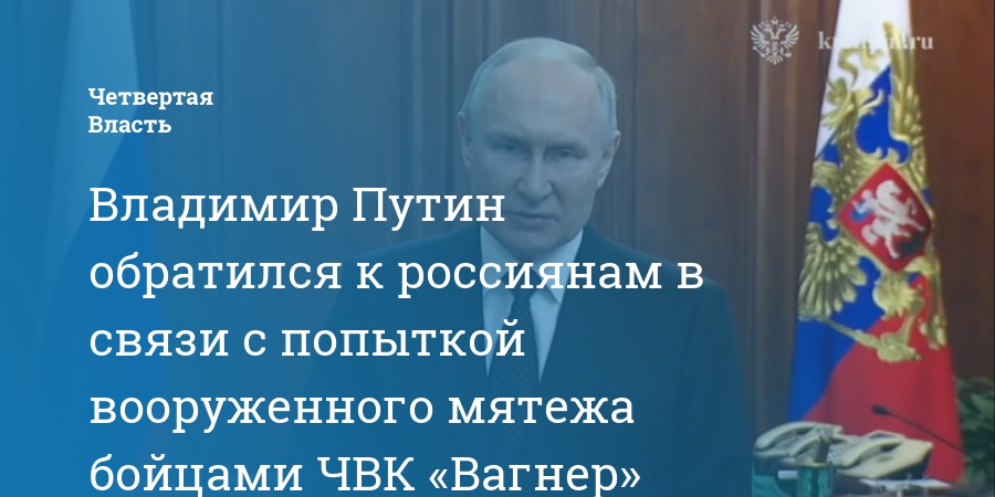 Владимир Путин обратился к россиянам в связи с попыткой вооруженного мятежа бойцами ЧВК «Вагнер»