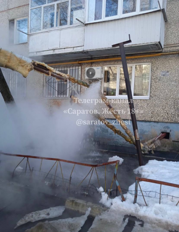 В Ленинском районе Саратова мусоровоз во дворе дома снес теплотрассу. Об этом сообщили очевидцы сегодня, 7 марта, в телеграм-канале «Саратов. Жесть 18+».
