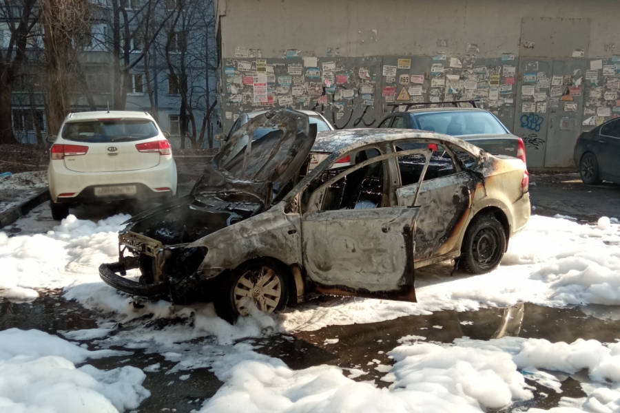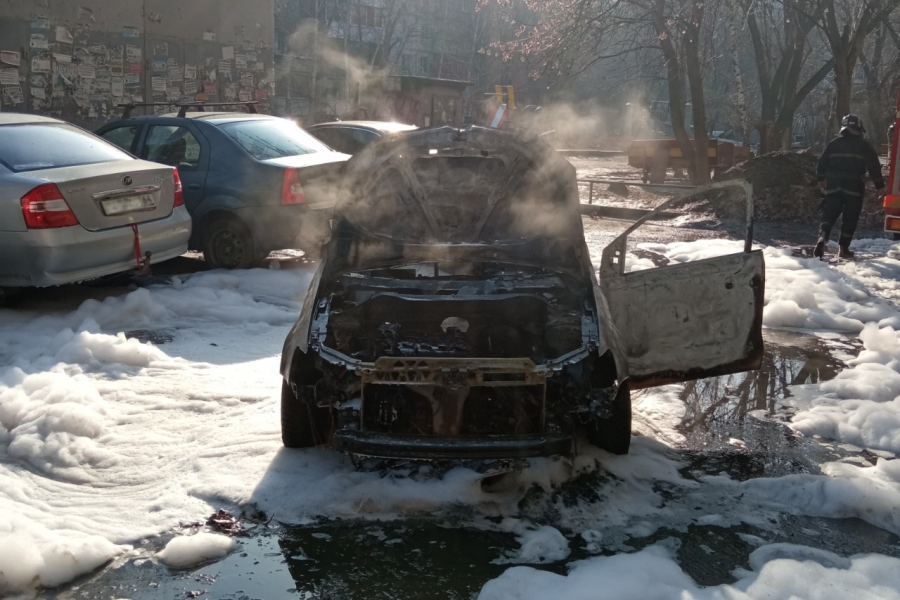 Известно, что около 7.50 пожарный расчет выехал по адресу Шехурдина, 36А. Там на открытой площадке загорелась автомашина «Фольксваген Поло». Охваченный огнем автомобиль покатился и проехал несколько метров и остановился вблизи припаркованных машин. Из-за этого повреждения лакокрасочного покрытия от пламени получили «Киа Рио» и «Лифан Солано».