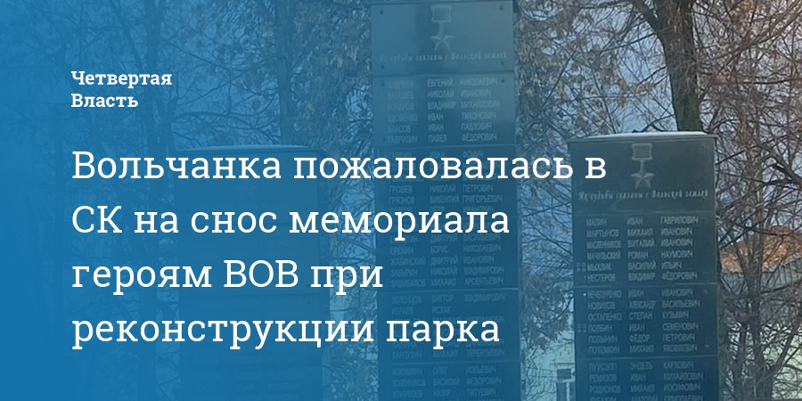 Вольчанка пожаловалась в СК на снос мемориала героям ВОВ при реконструкции парка