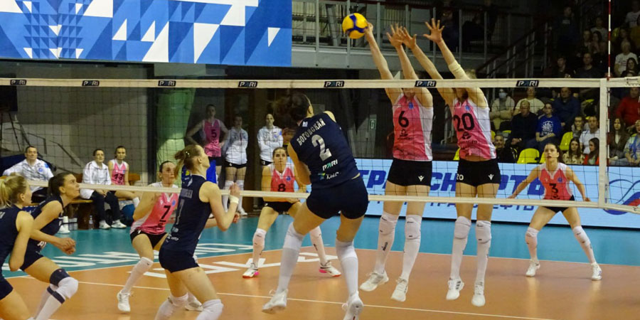 Во второй партии сибирячки добивались 4-очкового преимущества. После счета 14:12 они пропустили 8 очков подряд, настигли соперниц - 21:21, но снова хуже провели последние розыгрыши - 22:25.