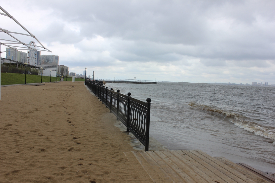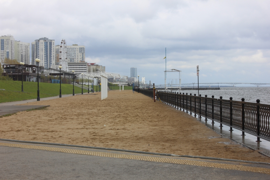 Помимо этого, из-за значительного подъема воды в Волге оказалась смыта часть песка на пляже. Вероятно, в преддверии пляжного сезона песок придется намывать заново. Сейчас уровень реки поднялся практически до уровня ограды. Добавим, что волнами также прибило кучи мусора, что добавляет работ по благоустройству.