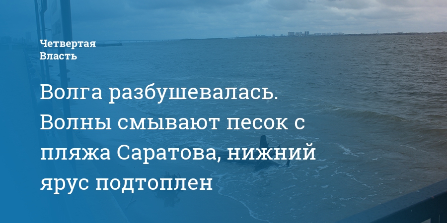 Волга разбушевалась. Волны смывают песок с пляжа Саратова, нижний ярус подтоплен