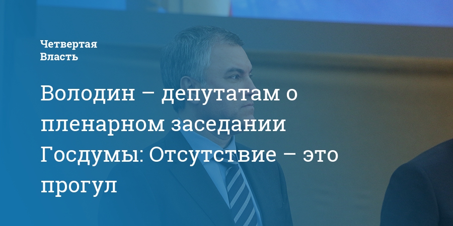Володин – депутатам о пленарном заседании Госдумы: Отсутствие – это прогул