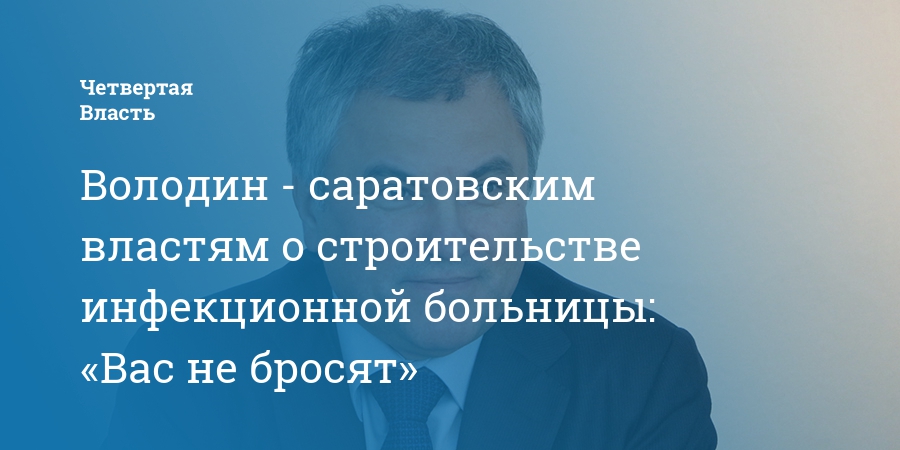 Володин - саратовским властям о строительстве инфекционной больницы: «Вас не бросят»