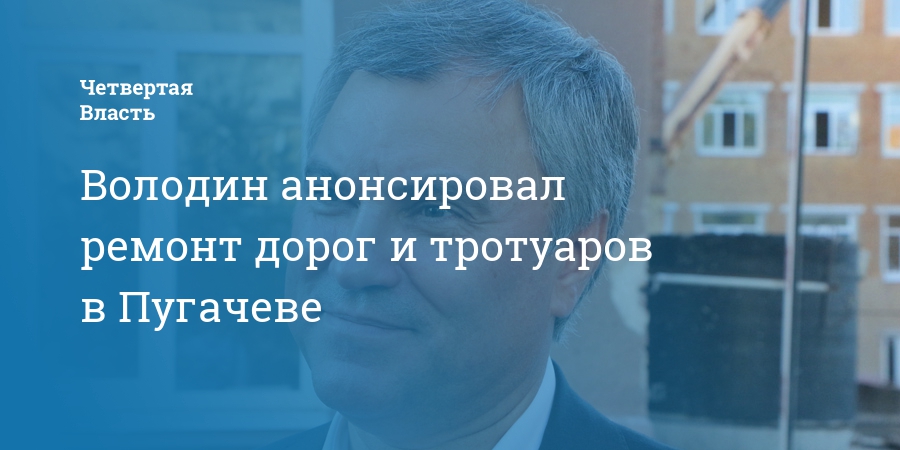 Председатель Госдумы Вячеслав Володин в рамках рабочего визита в Саратовскую область приехал в Пугачев. Там он анонсировал ремонт дорог и тротуаров, а также масштабное благоустройство.